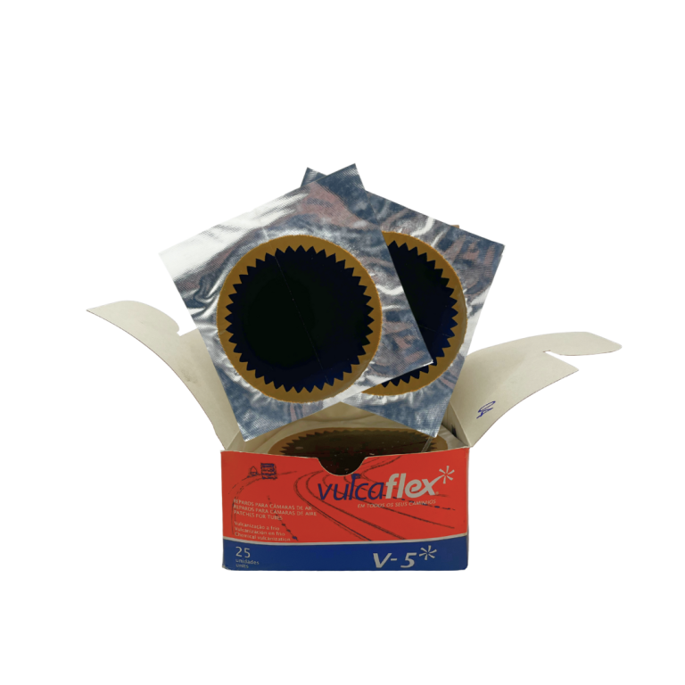 Los parches Vulcaflex REC-112 son productos utilizados para la reparación de neumáticos y cámaras de aire. Este tipo de parche es conocido por su alta resistencia y durabilidad, diseñado para cubrir y sellar de manera efectiva agujeros y cortes en neumáticos y cámaras.