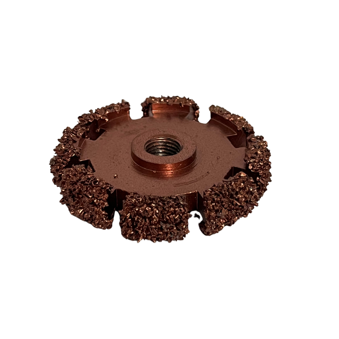 Disco raspador de alta resistencia con grano 36 y diámetro de 12 mm, diseñado especialmente para trabajos de preparación en la reparación de neumáticos. Ideal para raspar la superficie de caucho, eliminando impurezas, restos de material o residuos, y dejando la zona lista para aplicar parches o realizar vulcanizados. Su grano grueso permite un desbaste eficiente sin dañar la estructura del neumático.
